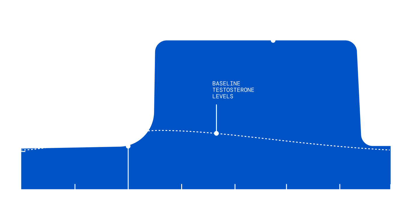Testosterone cream works quickly, with levels peaking within 2 hours after application. Tadalafil provides all-day blood flow benefits starting within an hour. Enclomiphene reaches full effect within 4 weeks. Most men notice improvements in energy, mood, libido, and performance within the first few weeks, with full benefits building over 2–3 months as dosing is optimized.